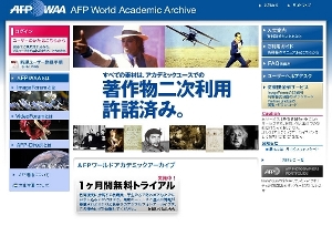 「AFP World Academic Archive」は、学校法人文化学園が日本国内の教育・学術・研究機関を対象にサービス展開しているオンライン・データベースサービスです(http://www.afpwaa.com/)。世界で最も長い歴史を持つフランス・AFP通信(Agence France-press)の報道用アーカイブに収蔵されている1000万枚以上の画像と50,000点以上のニュース映像が、インターネット経由で閲覧・検索できます。画像・映像ともにデータのダウンロードが可能で、アカデミックユースでの著作物二次利用許諾済みです。