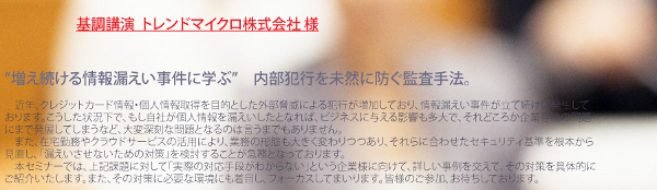 “増え続ける情報漏えい事件に学ぶ” 内部犯行を未然に防ぐ監査手法。