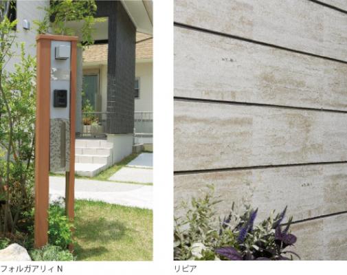 「フォルガ」は、アルミの芯材にアクリル系樹脂を一体成型し、継ぎ目がなく剥がれもない、耐候性に優れた素材で作られた門柱ユニットとスクリーンユニット。門柱ユニット3タイプとスクリーンユニット4サイズをご用意。