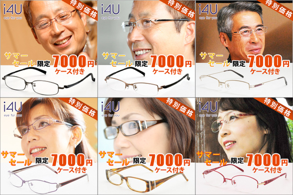 オーダー老眼鏡の企画・インタネット通販「i4U アイフォーユー」運営のアイフォーティー株式会社(福井県鯖江市 代表取締役 室田秀美)、サマーセールを8月23日まで開催。 期間限定で7000円セットを販売、期間中は各店ともシニアグラス全品が送料無料(6ヶ月保証付)。