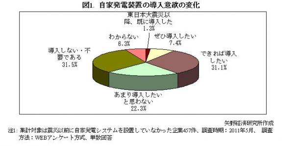 東日本大震災後、基幹システムの電源対策として自家発電装置を設置していない企業に対し、導入意欲が変化したか聞いたところ、38.5%の企業が自家発電装置の導入を前向きに検討している結果となった。
