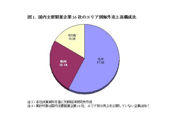 国内主要製薬企業19社の2009年度の海外売上高は前年度比2.6%増の2兆7,843億21百万円となった。ただし、米国をはじめとする海外において主力製品の特許が相次いで切れるという“2010年問題”の影響を受け米国市場が前年度を下回ったことから、2009年度は全体では小幅な伸長に止まった。なお、エリア別でみると北米市場が約6割を占める。