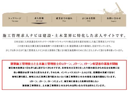 また、復興支援ポータルサイト「復興計画WATCH」(http://fukkoukeikaku.jp/)、および建設技術者の求人サイト「施工管理求人ナビ」(http://kyujin.fukkoukeikaku.jp/)、「施工管理技士派遣ならチームINQ合同会社」(http://teaminq.jp/)の3サイトを運営することで、円滑な求人と被災地派遣を実現します。