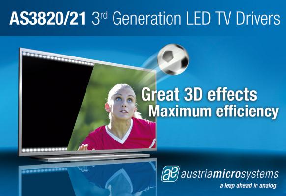 austriamicrosystems(日本法人:オーストリアマイクロシステムズ・ジャパン株式会社、東京都港区、カントリーマネージャー 岩本桂一)は本日、最新のLCDテレビのニーズに完全対応するために性能と機能を最適化した2つの新しいLEDドライバICを発表しました。これらのデバイスは、画質を最適化しながらエネルギー消費の最小化を実現する第3世代ドライバファミリの最初の製品となります。