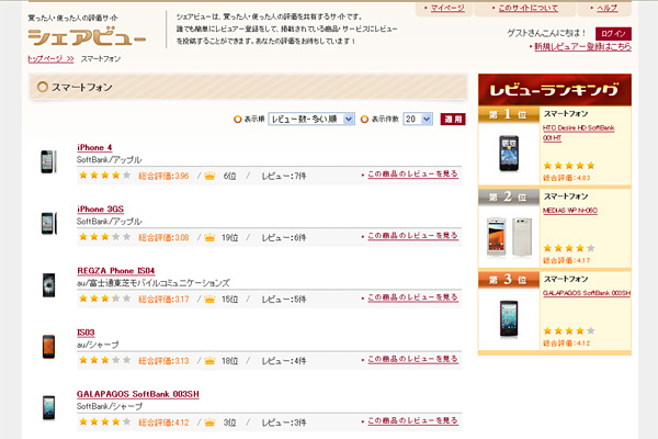 ■シェアビューは、世の中にある様々な商品やサービスの評価を共有するサイトです。