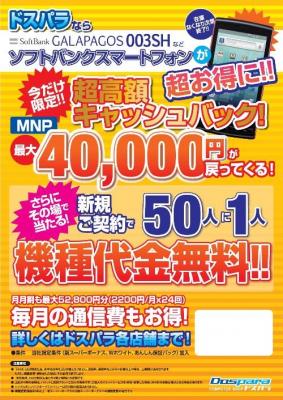 全国24店舗及びウェブ通販のパソコンショップ『ドスパラ』を運営する株式会社サードウェーブ(代表取締役 : 尾崎健介、本社 : 東京都千代田区)は、2011年7月22日(金)より、ソフトバンクスマートフォンを新規でご契約いただいたお客様を対象に、抽選で50名に1名、その場で機種代金を無料にする『新規ご契約で50人に1人機種代金無料キャンペーン』を開始いたしました。