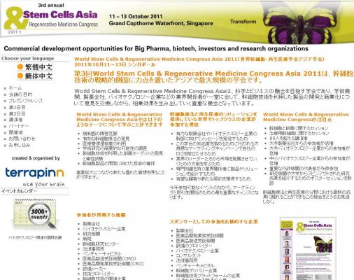 第3回World Stem Cells & Regenerative Medicine Congress Asia 2011は、幹細胞技術の戦略的側面に力点を置いたアジアで最大規模の学会です。