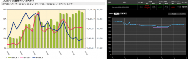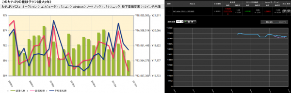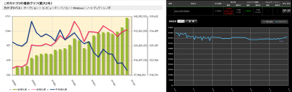 左側はYahoo!オークションにおけるlenovo製品の落札動向(Yahoo!オークション末端カテゴリ)です。