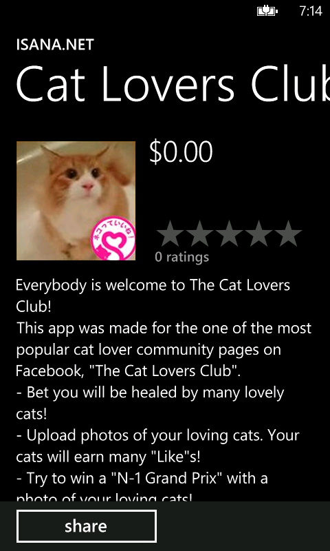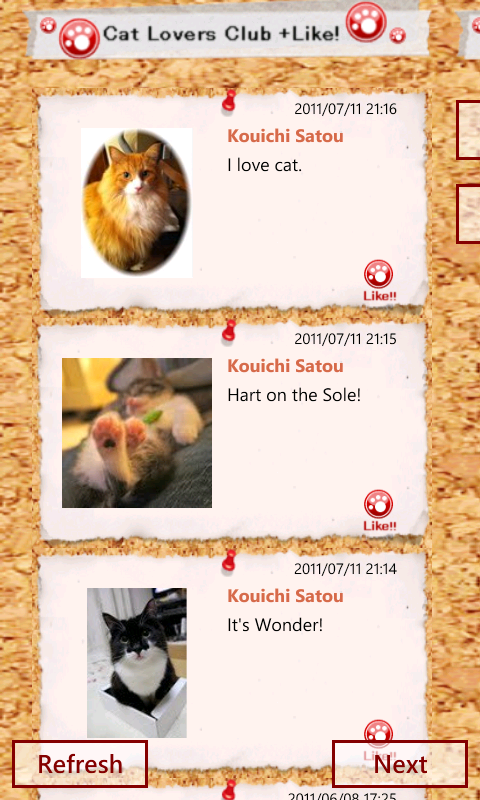 すでに当社では、Facebook上でもっとも人気のあるコミュニティページ、「ネコっていいね!倶楽部(Cat Lovers Club +Like! )」用のWindows Phone版アプリをWindows Phone マーケットプレイス で公開し、Windows Phoneにおけるソーシャルメディアとの融合のデモンストレーションを行っております。