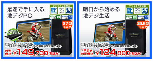 ▼地デジを一刻も早く見たい方は必見!「地デジPC 明日着モデル」はこちら