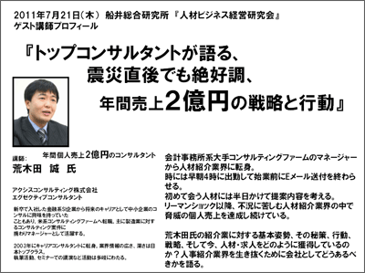 2011年7月21日(木) 船井総合研究所 『人材ビジネス経営研究会』 で講師を務めました!