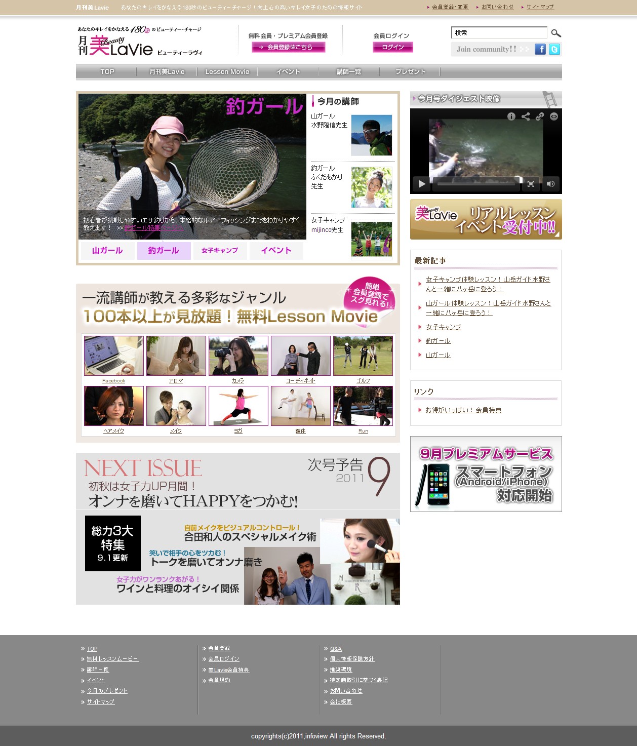 ネットカフェ・漫画喫茶を対象にした動画配信事業をおこなう株式会社インフォビュー(本社:東京都千代田区・代表取締役 小林隆)が、新規事業として4月から試験運営していた「女性向け3分間おケイコ動画配信サービス 【美LaVie(ビューテ?ィーラヴィ)】」が「月刊美Lavie」として8月1日に大幅リニューアルオープンいたします。(http://www.try180.com)