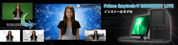 「Prime Raytrek-V ROBUSKEY LIVE インストールモデル」は、ウェブ生放送などで人物の背景を写真や動画に設定する「リアルタイムクロマキー合成」を、高品質かつ低価格で実現するソフトウェア「ROBUSKEY LIVE」をプリインストールしています。
