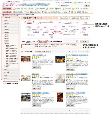 また、みんなのウェディングは一件の口コミ投稿に関し、300文字以上という条件を設けているため、質・量ともに充実した口コミから抽出されたキーワードは、ユーザーの検索イメージとも合致します。