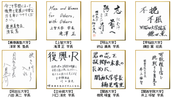 教育出版の株式会社旺文社(本社:東京都新宿区、代表取締役 赤尾 文夫)では、今回の震災にあたり、被災した高校生へ向けて、全国の大学学長に色紙に直筆の応援メッセージを依頼しました。