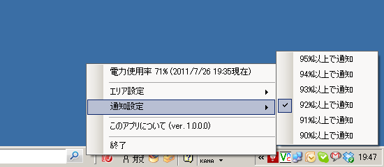 パソコン用「電力ひっ迫通知アプリ」http://isana.net/denkiinfo