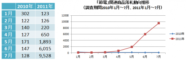 2011年は電力不足が叫ばれ、節電の意識が高まっていることから今回「節電」のキーワードを基にネットオークション市場の落札動向の調査を行いました。