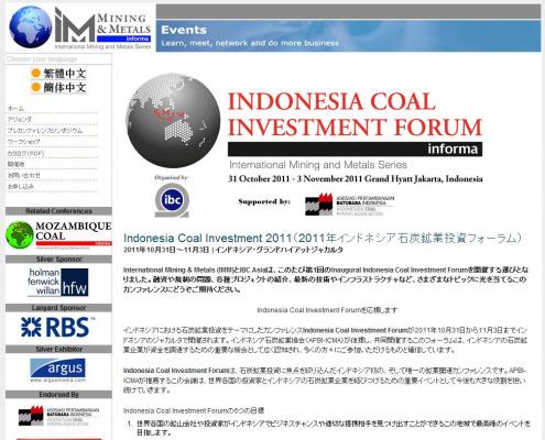 会議:「Indonesia Coal Investment 2011 (2011年インドネシア石炭鉱業投資フォーラム)」
