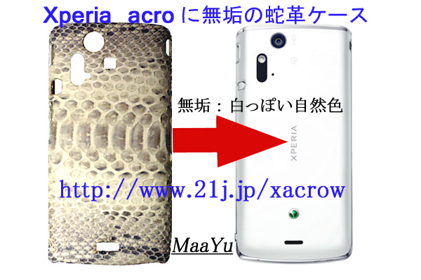Xperia acro用に蛇革自然色無垢の片面ケースが登場した。
