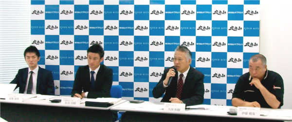 【画像】記者会見の模様(8月2日東京港区パイプドビッツ本社) 写真右から、「チーム王冠」代表:伊藤氏、「日本一丸」代表:大西氏、「パイプドビッツ」代表取締役社長 CEO:佐谷、同マーケティング本部 ディレクター:遠藤
