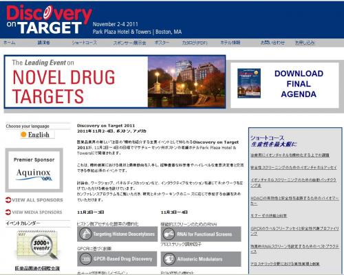 医薬品業界の新しい“注目の”標的を紹介する主要イベントとして知られるDiscovery on Target 2011が、11月2日~4日の日程でマサチューセッツ州ボストンの老舗ホテルPark Plaza Hotel & Towersにて開催されます。
