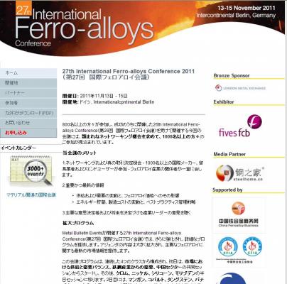 株式会社グローバル インフォメーションでは、皆様の利便性を図る為に、日本語、韓国語、中国語で「27th International Ferro-alloys Conference 2011 (第27回国際フェロアロイ会議)」の情報を提供するとともに、会議の参加のお申し込みを承っております。