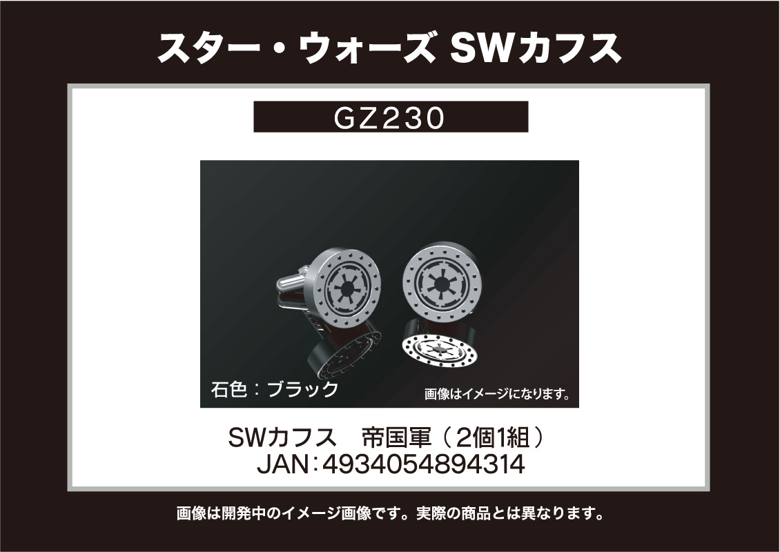 カラーストーンを使ったゴージャスな仕上げのカフスはビジネスシーンの腕先を飾るお洒落アイテム。さりげなくあしらわれた帝国軍、反乱軍のマークが目を引きます。春夏のビジネススタイルにも、カジュアルにもお使いいただけます。