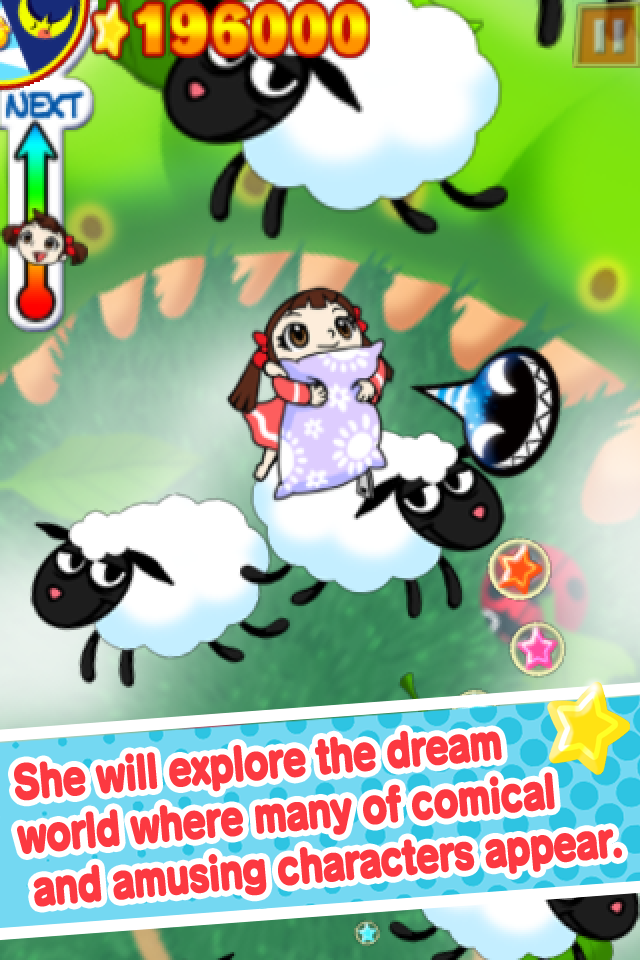 ジャンプによる爽快感と夢世界の幻想的な雰囲気が特徴的で、指先ひとつで遊べる簡単な操作性と様々な仕掛けによって、初心者から上級者まで幅広いプレイヤー層が楽しめるアクションゲームとなっています。