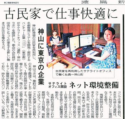 徳島新聞に紹介されました【三三株式会社】~“オフィスは古民家” 徳島県神山町に東京のITベンチャーがラボ開設~