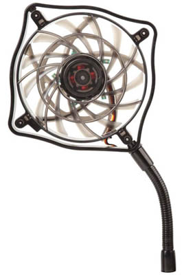 Spot Cool 100は、狙った場所をダイレクトに冷却できるフレキシブル冷却ファンです。角度調整には、無段階調整のフレキシブルアームと360度回転するローテーションヘッドを採用しています。マザーボードに直接取り付けて、メモリー、チップセットやグラフィックスカード等の冷却を強化できます。デュアルモードスイッチにより、自動回転数制御モード、もしくは回転を2000RPMで固定することができます。