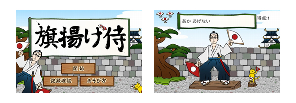 声と文字に合わせて旗を上げ下げする非常にシンプルなゲームです。