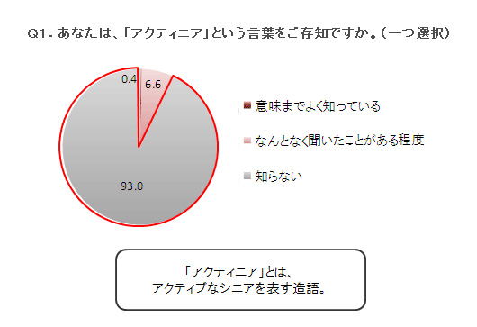 「アクティニア」という言葉の認知を尋ねたところ、93.0%が「知らない」と回答。