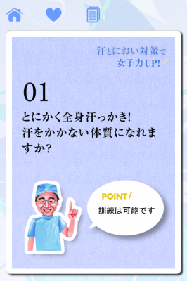 本アプリでは、身近にある安全な素材を利用した汗とにおいケアの方法を提案しています。汗やにおいの悩みが大きい場合、人付き合いが消極的になることもあります。