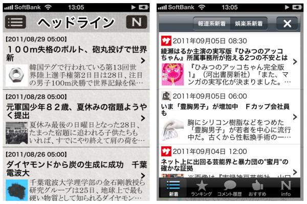 見出しをクリックすると、AppStoreやAndroid Marketへ飛んでダウンロードを促進する仕様で、プロモーション面で相互リンク的な強みがあります。