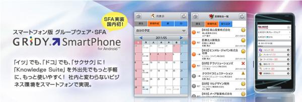 業務支援型SaaS・クラウドコンピューティングカンパニーのブランドダイアログ株式会社(本社:東京都中央区、代表取締役社長 稲葉雄一 以下BD) の提供するSaaS 型グループウェアGRIDY(グリッディ) を含む、SaaS型 営業支援SFA・顧客管理CRMリード育成基盤「Knowledge Suite(ナレッジスイート)」のスマートフォン専用アプリケーション「GRIDY SmartPhone for Android」を9月1日より正式リリースしました。