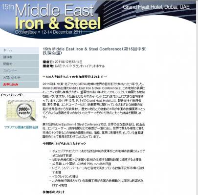 会議:「15th Middle East Iron & Steel Conference (第15回中東鉄鋼会議)」