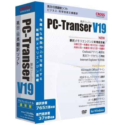 本製品は、1991年、国内初のパーソナルコンピュータで動作する自動翻訳ソフトとして誕生した「PC-Transer」の改定第19版となる製品です。実務翻訳の効率化を目的として新開発した「新翻訳メモリ」機能を搭載、また、メールソフトOutlook2000~2010(32bitのみ)アドイン機能、Office2010(32bitのみ)アドイン機能、英文ワードカウント機能を新たに搭載し、より便利になった新バージョンです。