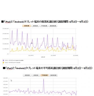 オークションの落札動向についてiPad単体とAndroid端末を比較してみました。