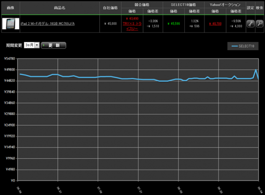 以下は「iPad2 16GB MC769J/A」のECショップの値動きを示したチャートです。