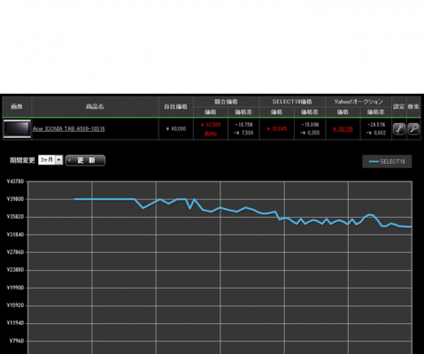 iPad(iPad2)の価格は調査期間中値崩れする様子が全く見られず、一定の価格に落ち着いたように見られます。