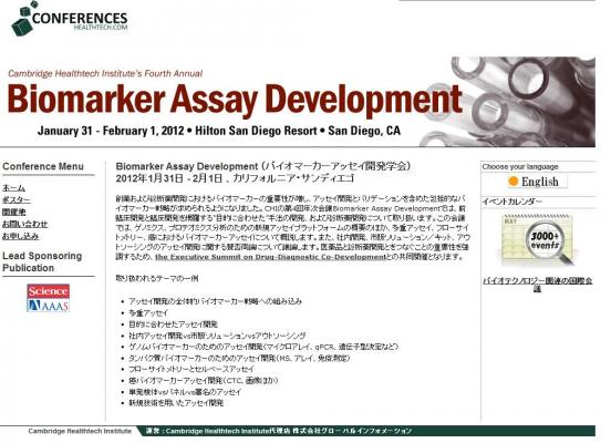 株式会社グローバル インフォメーションでは、皆様の利便性を図る為に、日本語、英語、韓国語、中国語で「Biomarker Assay Development (バイオマーカーアッセイ開発学会)」の情報を提供するとともに、学会の参加のお申し込みを承っております。