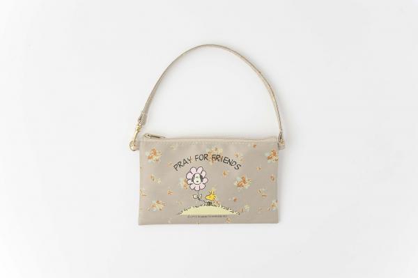 <お出かけポーチ>震災のチャリティを意識してデザインされたお出かけポーチ。バッグにひっかけても、単体でも使える便利なサイズです。こちらも裏地はペパーミントグリーン。そしてファスナーつきなので、お財布やケータイを入れてもOK!横16.5×縦10cm
