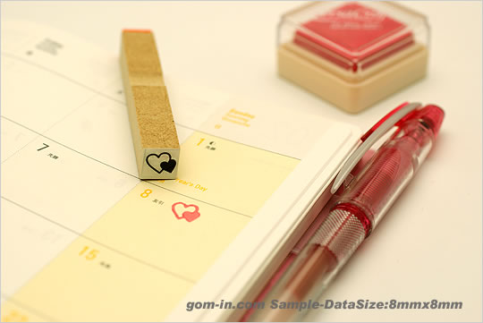 新商品『イラストスタンプ』は、手帳、卓上カレンダー、ポイントカードなど、小さいスペースにも捺せる8mm×8mmサイズのゴム印です。