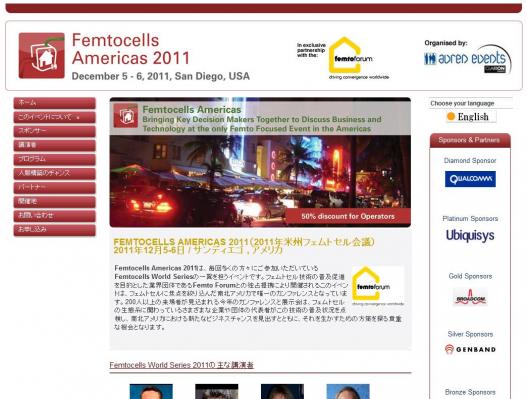 Femtocells Americas 2011は、毎回多くの方々にご参加いただいているFemtocells World Seriesの一翼を担うイベントです。フェムトセル技術の普及促進を目的とした業界団体であるFemto Forumとの独占提携により開催されるこのイベントは、フェムトセルに焦点を絞り込んだ南北アメリカで唯一のカンファレンスとなっています。