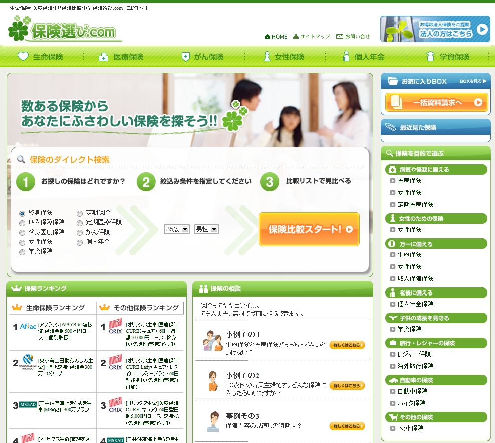 “保険比較なら保険選び.comにお任せ!”でおなじみの「保険選び.com」(http://www.hokenerabi.com/)。