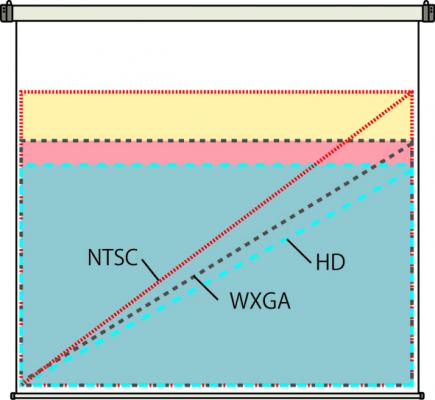 ■一台のスクリーンで、解像度の異なるアスペクトの、同じサイズが投写可能。