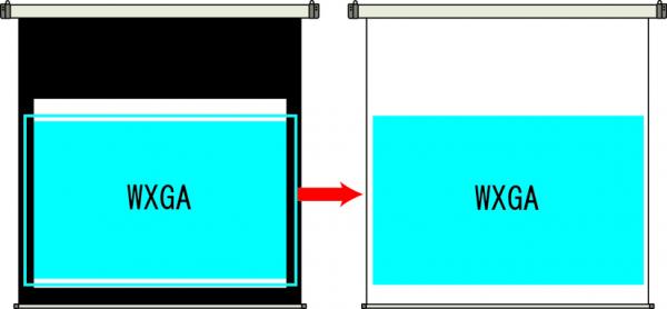 ■異なるアスペクト(HD、WXGA等)を投写する場合でも幕面一杯が利用できる。