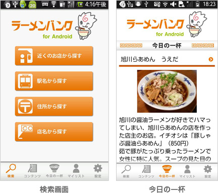 株式会社ラーメンデータバンク(本社:東京都目黒区 代表取締役:下川博久)とCLINKS(クリンクス)株式会社(本社:東京都中央区 代表取締役:河原浩介)は、全国27,000店のラーメン店情報を誇るラーメン総合サイト 「ラーメンバンク」のAndroidアプリ 【 ラーメンバンク for Android】の大幅リニューアルを行った。