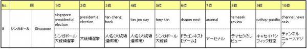 ・シンガポール:8月27日に行われた大統領選挙に関連するキーワードが上位を独占
