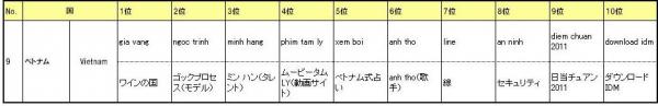 Google検索で世界30ヶ国において2011年8月に検索回数が急上昇したキーワードを選定し、今回は、マレーシア・シンガポール・ベトナムの3カ国と全体の分析を行いました。